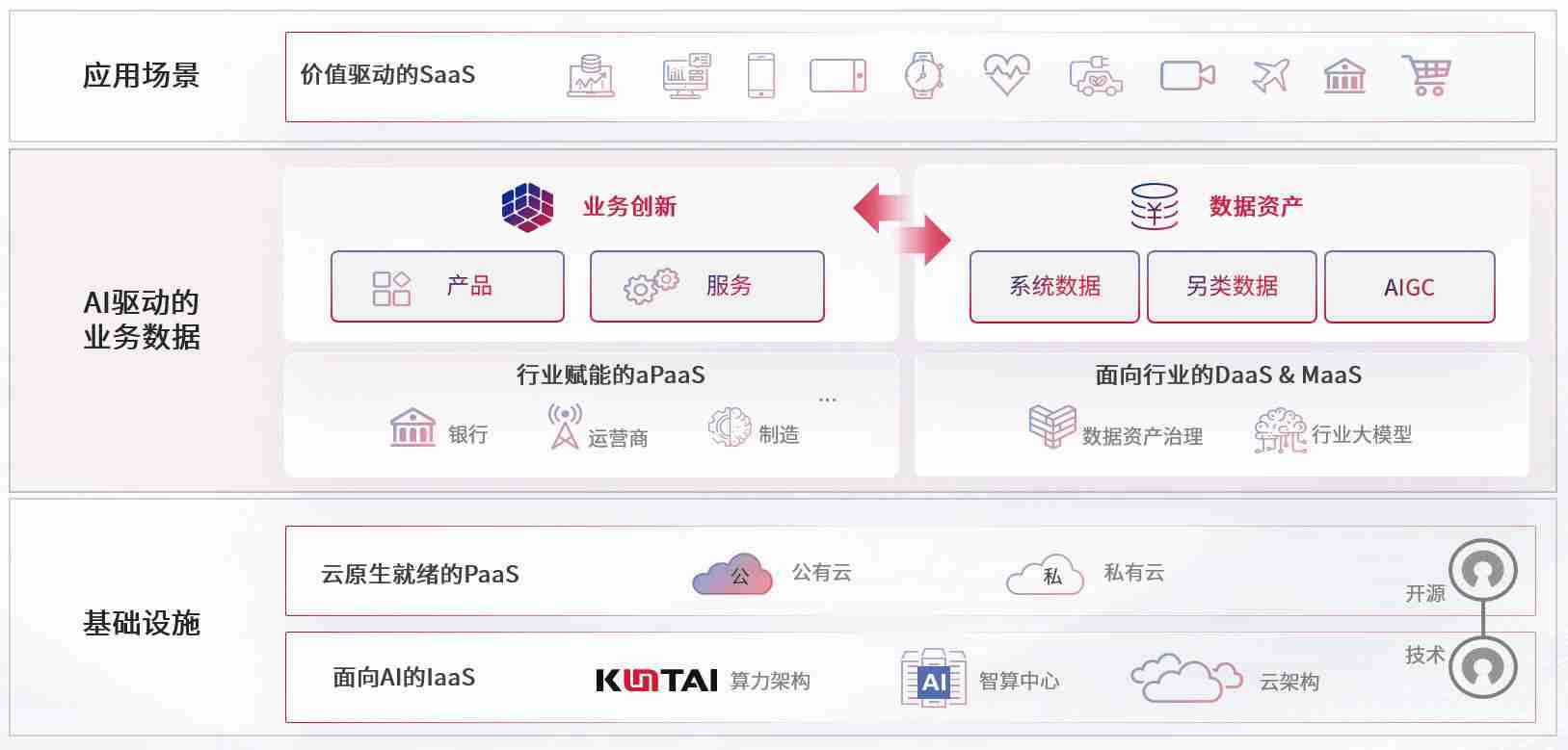 数字时代,,围绕企业数字化转型的关键要素,,,,壹号平台数码开创性的提出数云融合战略和技术体系框架,,,,着力在云原生、、、数字原生、、AI原生和信创产业上架构产品和服务能力,,为处在不同数字化转型阶段的快消零售、、汽车、、、金融、、医疗、、政企、、、、教育、、、、运营商等行业客户提供泛在的敏捷IT能力和融合的数据驱动能力,,构建跨界融合创新的数字业务场景和新业务模式,,,,助力企业级客户建立面向未来的核心能力和竞争优势,,,,全面推动社会的数字化、、、、智能化转型升级。。。
